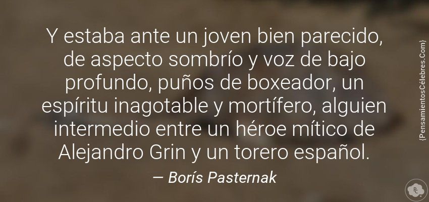 "Y estaba ante un joven bien parecido, de aspecto sombrío y voz de bajo profundo, puños de boxeador, un espíritu inagotable y mortífero, alguien intermedio entre un héroe mítico de Alejandro Grin y un torero español."