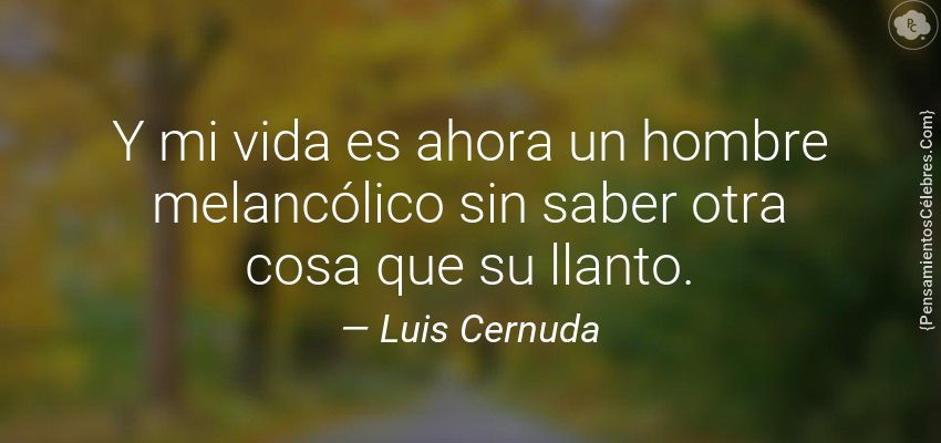 "Y mi vida es ahora un hombre melancólico sin saber otra cosa que su llanto."