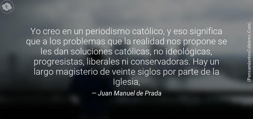 "Yo creo en un periodismo católico, y eso significa que a los problemas que la realidad nos propone se les dan soluciones católicas, no ideológicas, progresistas, liberales ni conservadoras. Hay un largo magisterio de veinte siglos por parte de la Iglesia,"