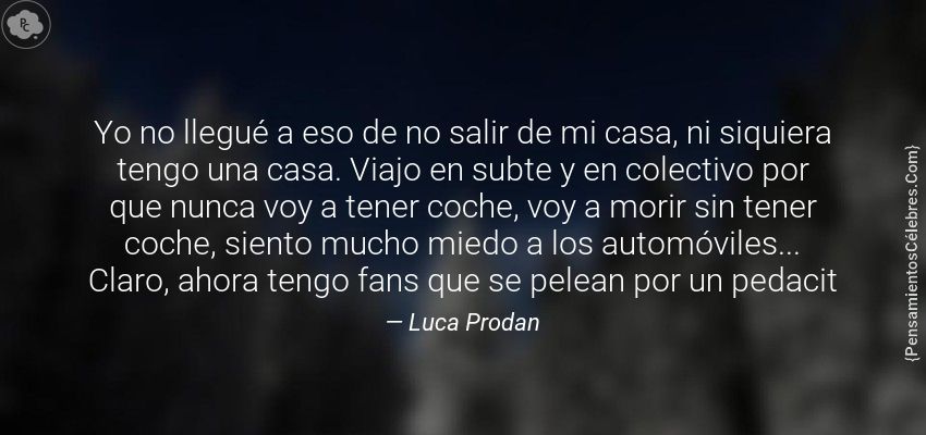 "Yo no llegué a eso de no salir de mi casa, ni siquiera tengo una casa. Viajo en subte y en colectivo por que nunca voy a tener coche, voy a morir sin tener coche, siento mucho miedo a los automóviles... Claro, ahora tengo fans que se pelean por un pedacit"