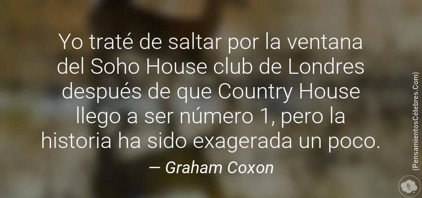 "Yo traté de saltar por la ventana del Soho House club de Londres después de que Country House llego a ser número 1, pero la historia ha sido exagerada un poco."